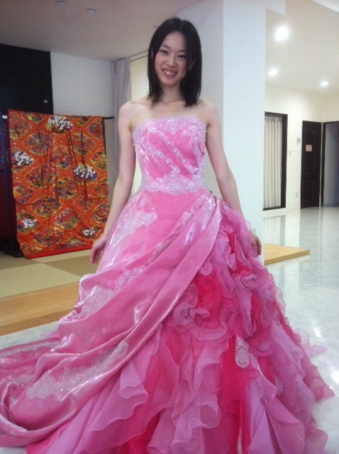 お写真は先週カラードレスを試着した時の写メ。